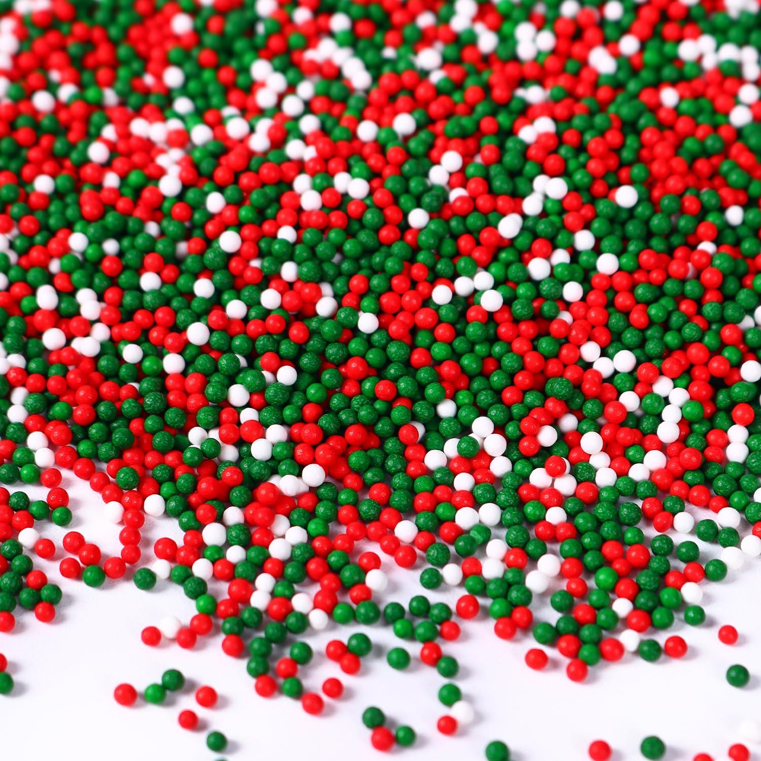 - [ Christmas Sprinkles ] Our christmas nonpareils sprinkles are non toxic and 100% edible. Use edible nonpareils sprinkles to decorate cakes, cupcake or cookies after baking to avoid melting. Use raw materials that meet food safety standards