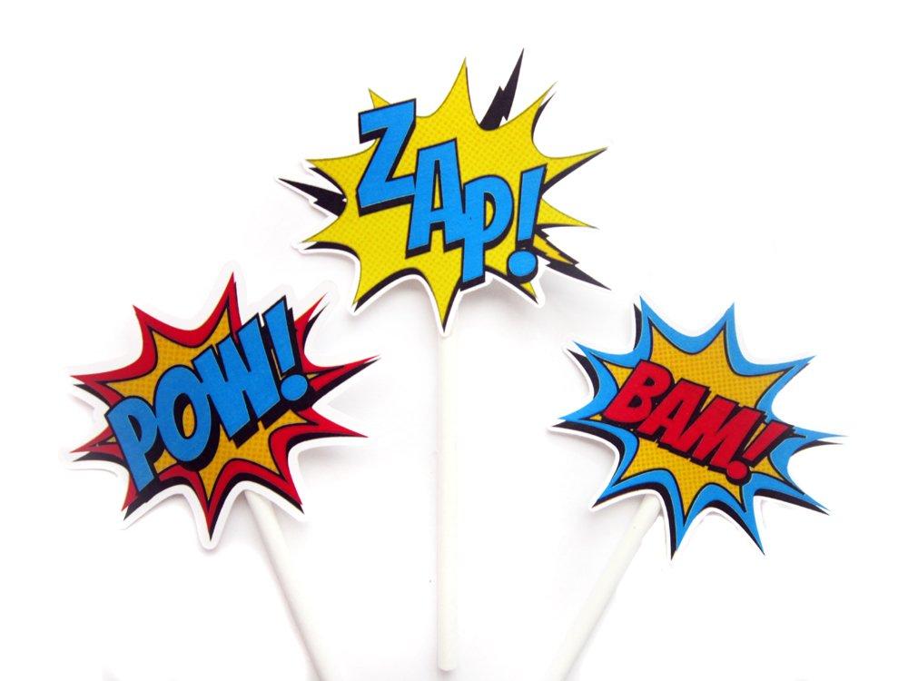 Cupcake toppers are made out of cardstock paper and attached to 4" lollipop sticks. The cupcake toppers are approximately 2". Cupcake toppers are single sided. The back has the stick attached and is a solid color.