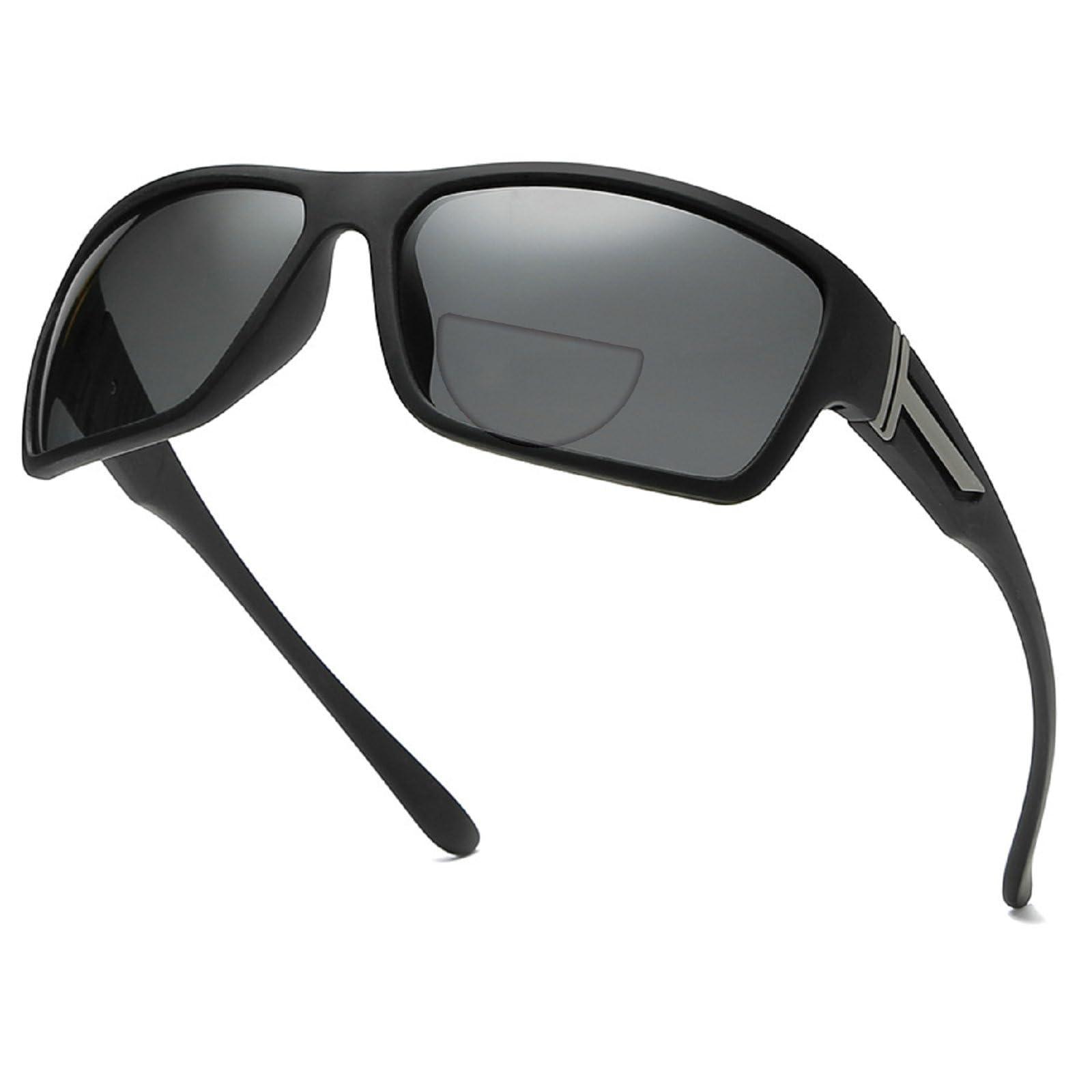 - BIFOCAL READERS:These sports sunglasses come equipped with bifocal lenses that eliminate the need to switch between glasses, allowing you to read or check your phone/book (especially in a place with harsh sunlight)without compromising visibility or comfort.It also minimizes the visual distortion typically associated with durable lenses making it useful for fishing/biking/running.